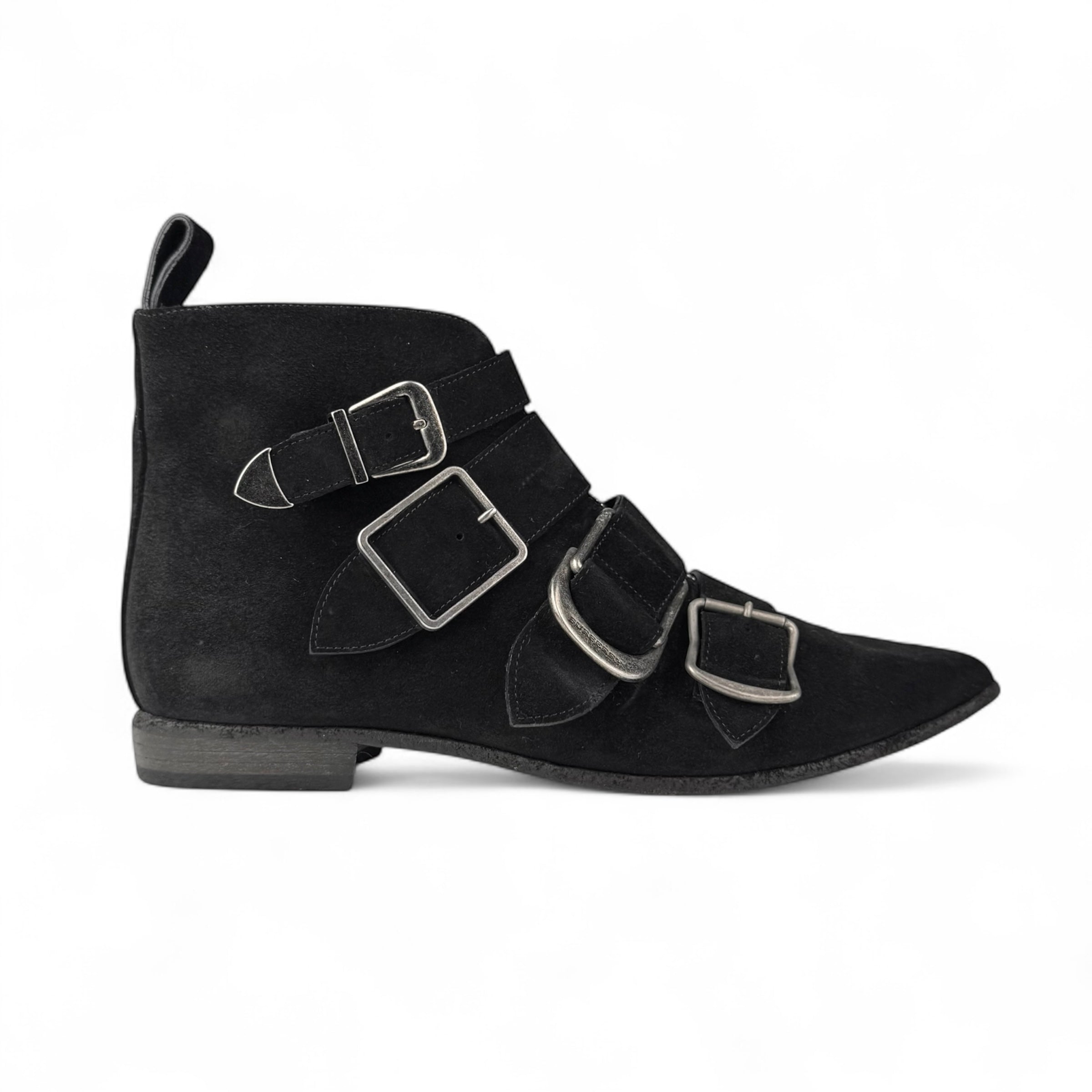 Burberry Black Suede Milner Buckle Detail Ankle Boots