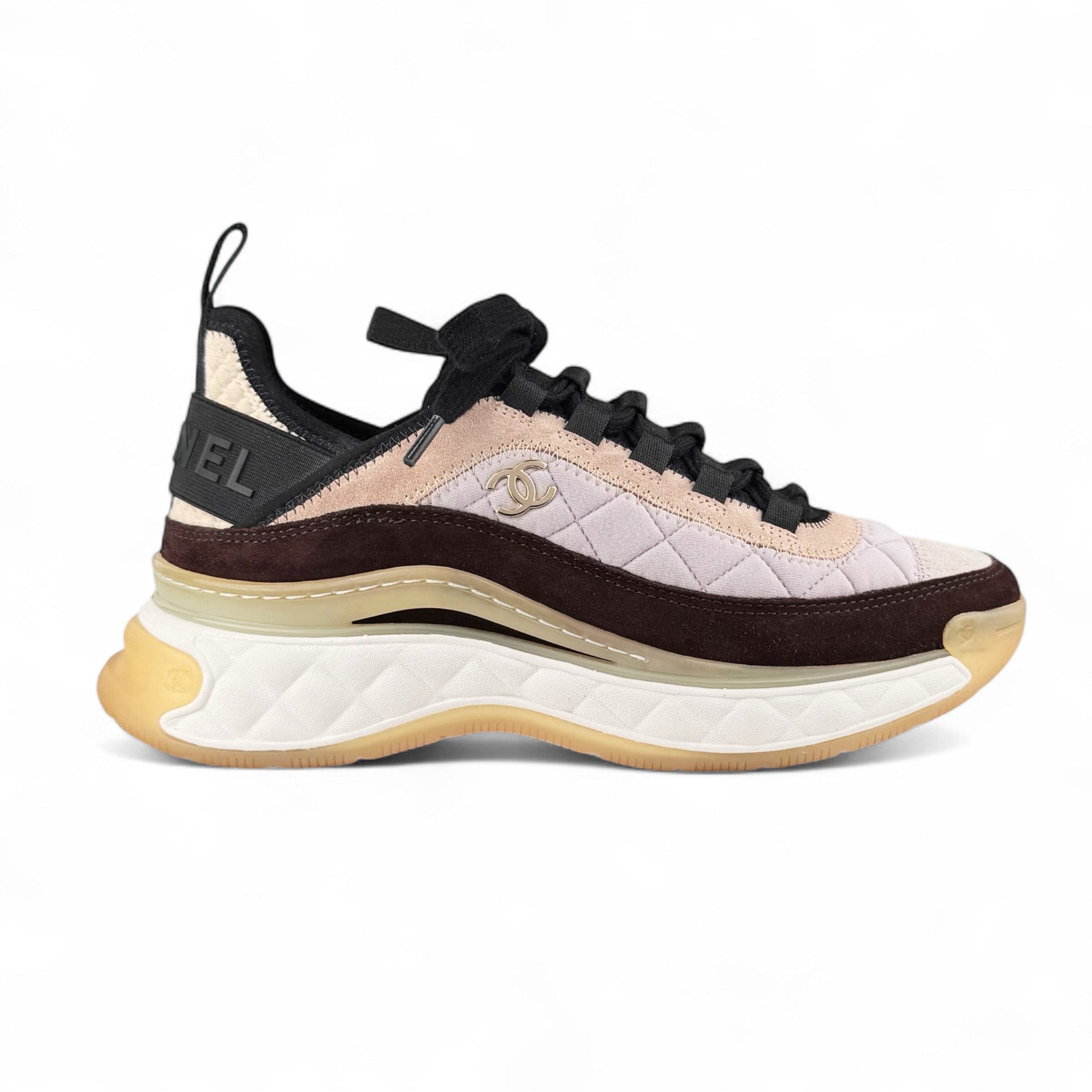 Chanel 2021 Multi Colour Purple Suede Quilted CC Chunky Sneakers