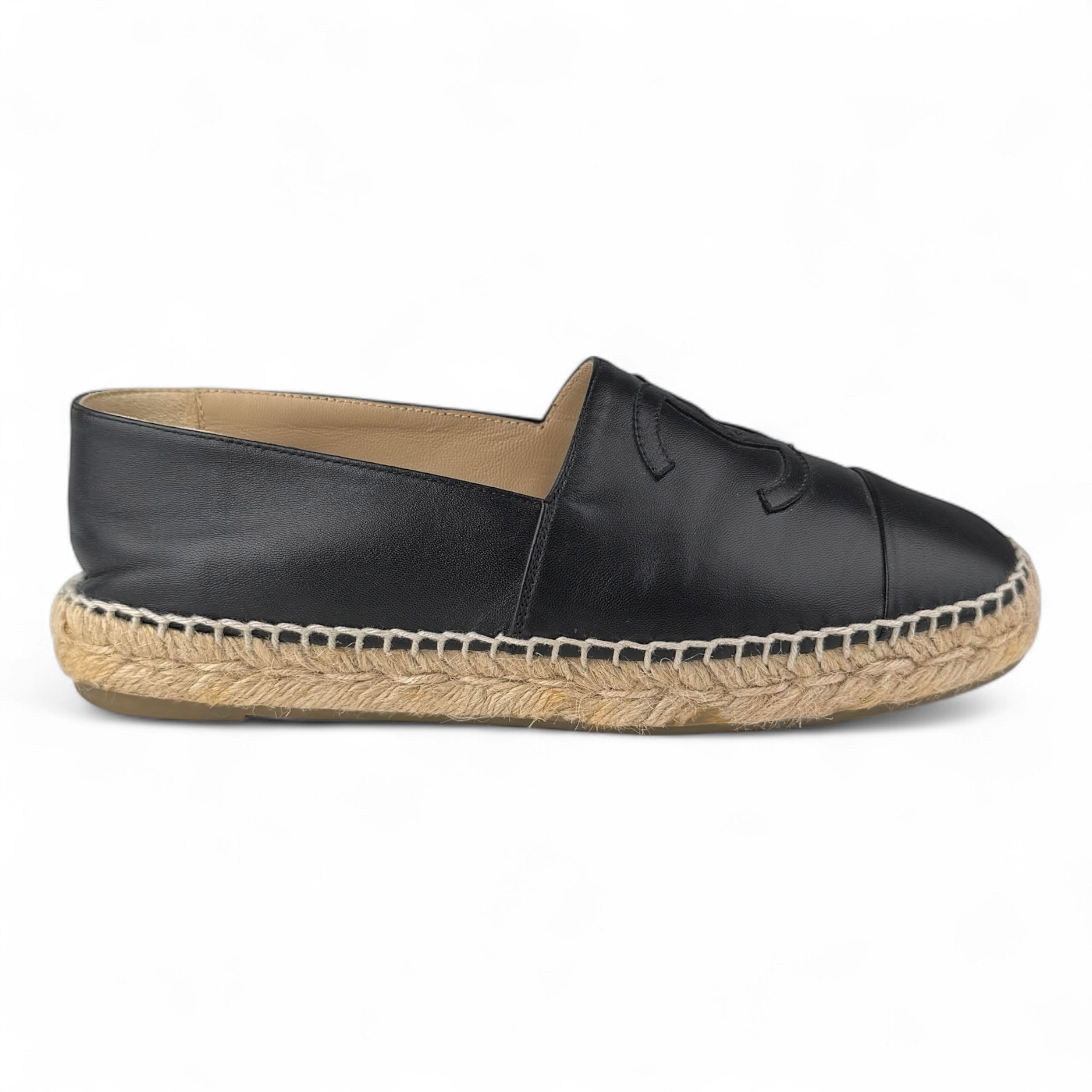 Chanel Black Leather Espadrilles