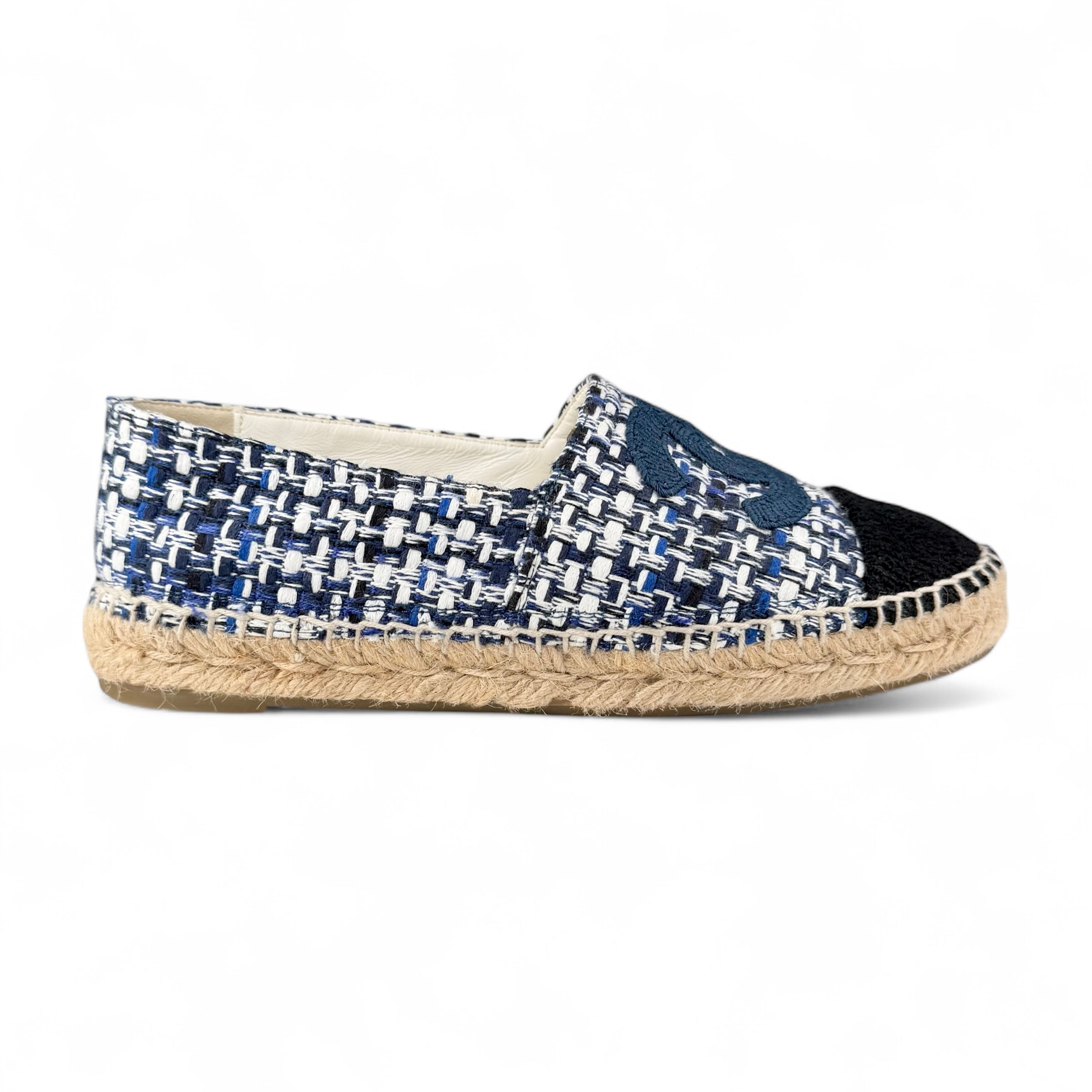 Chanel Blue White & Black Tweed Espadrilles