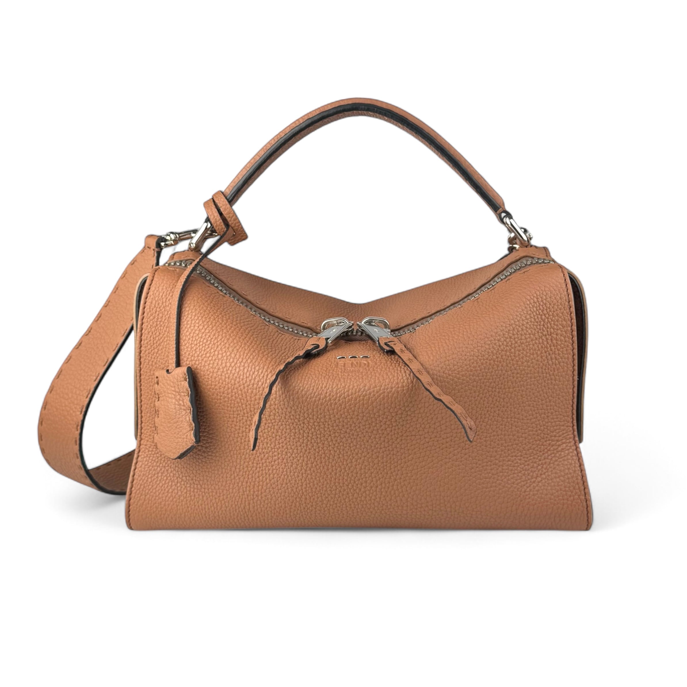 Fendi Brown Leather Romano Selleria Lei Boston Bag