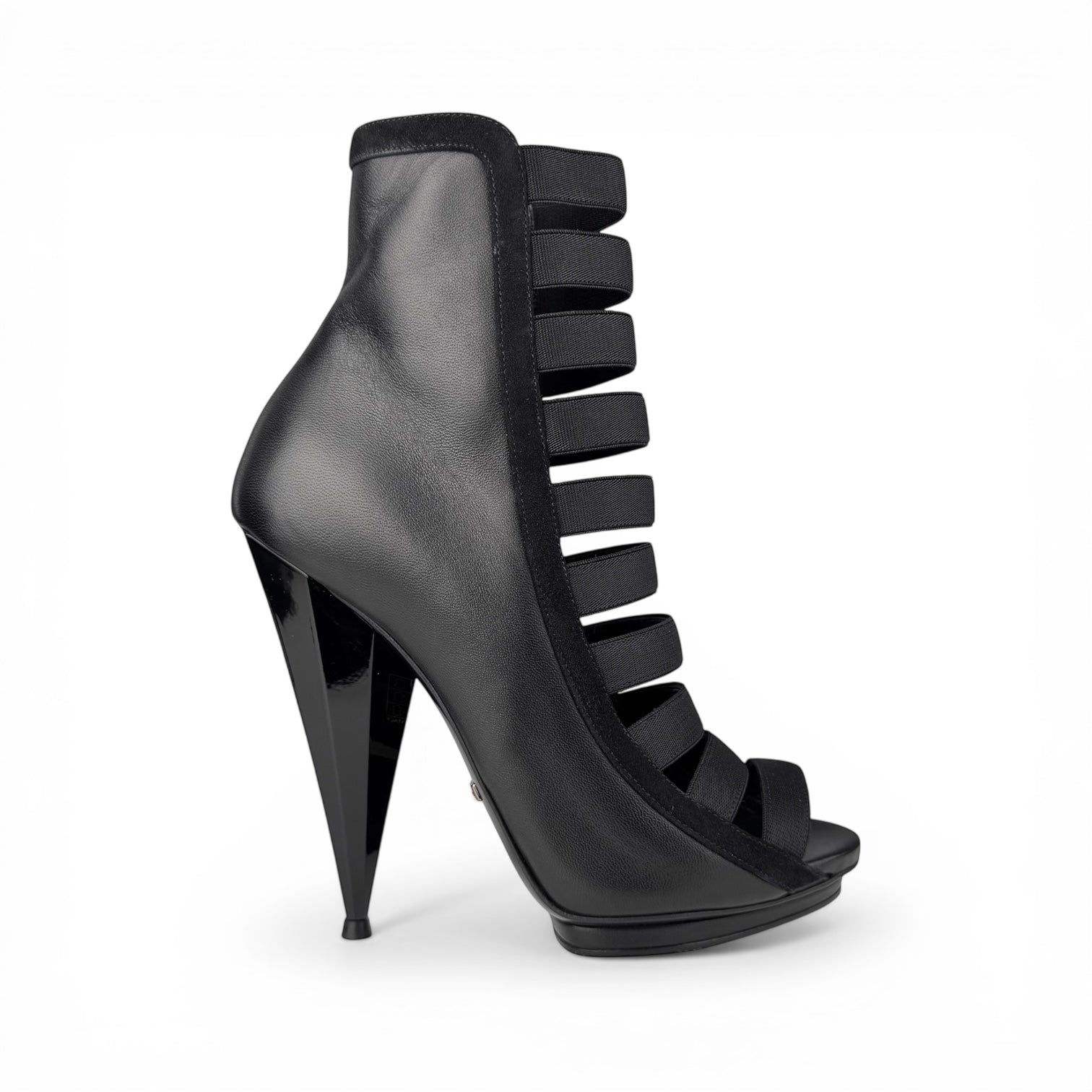 Gucci Black Leather Elastic Open Toe Olimpia Booties