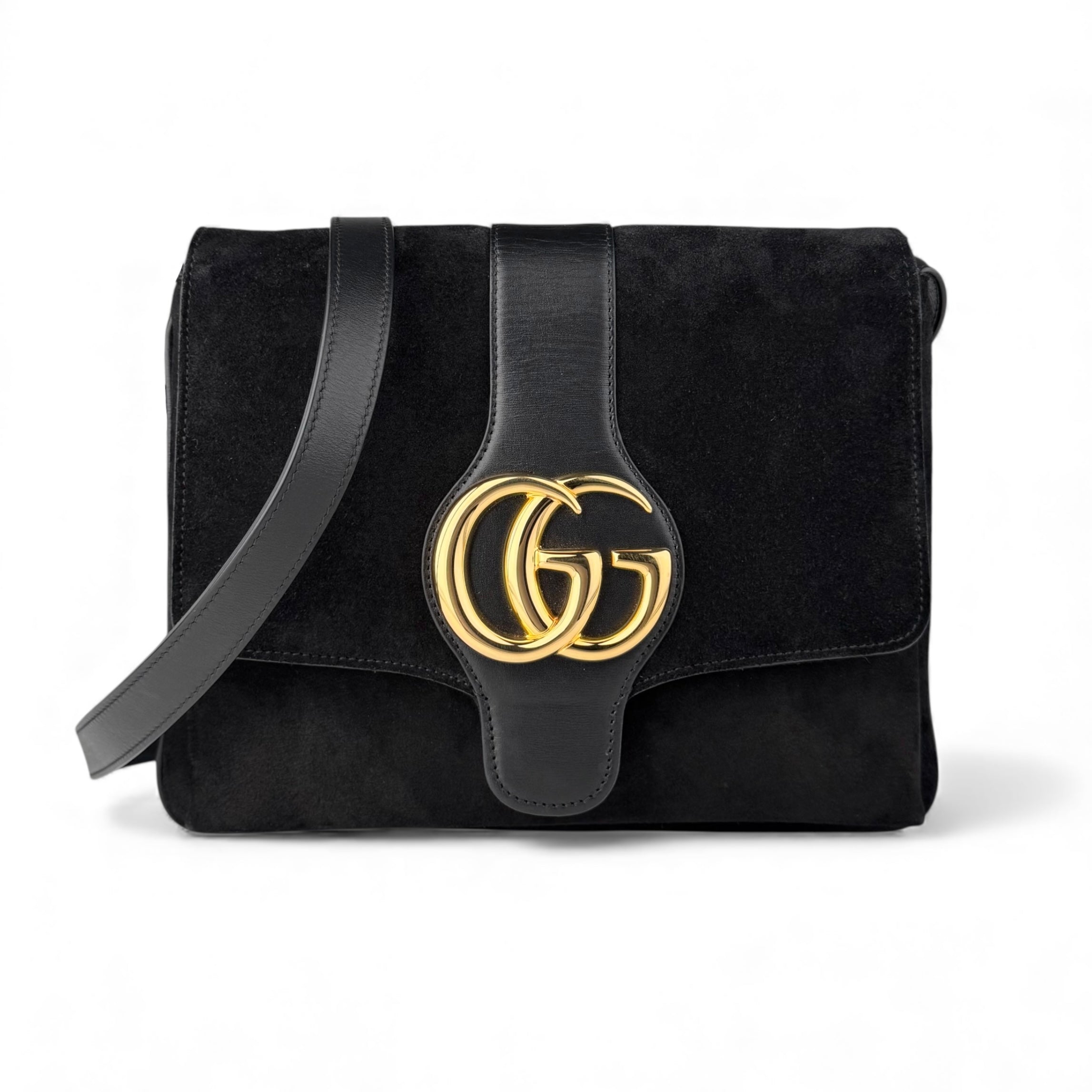 Gucci Black Suede Leather Medium Arli Flap Shoulder Bag