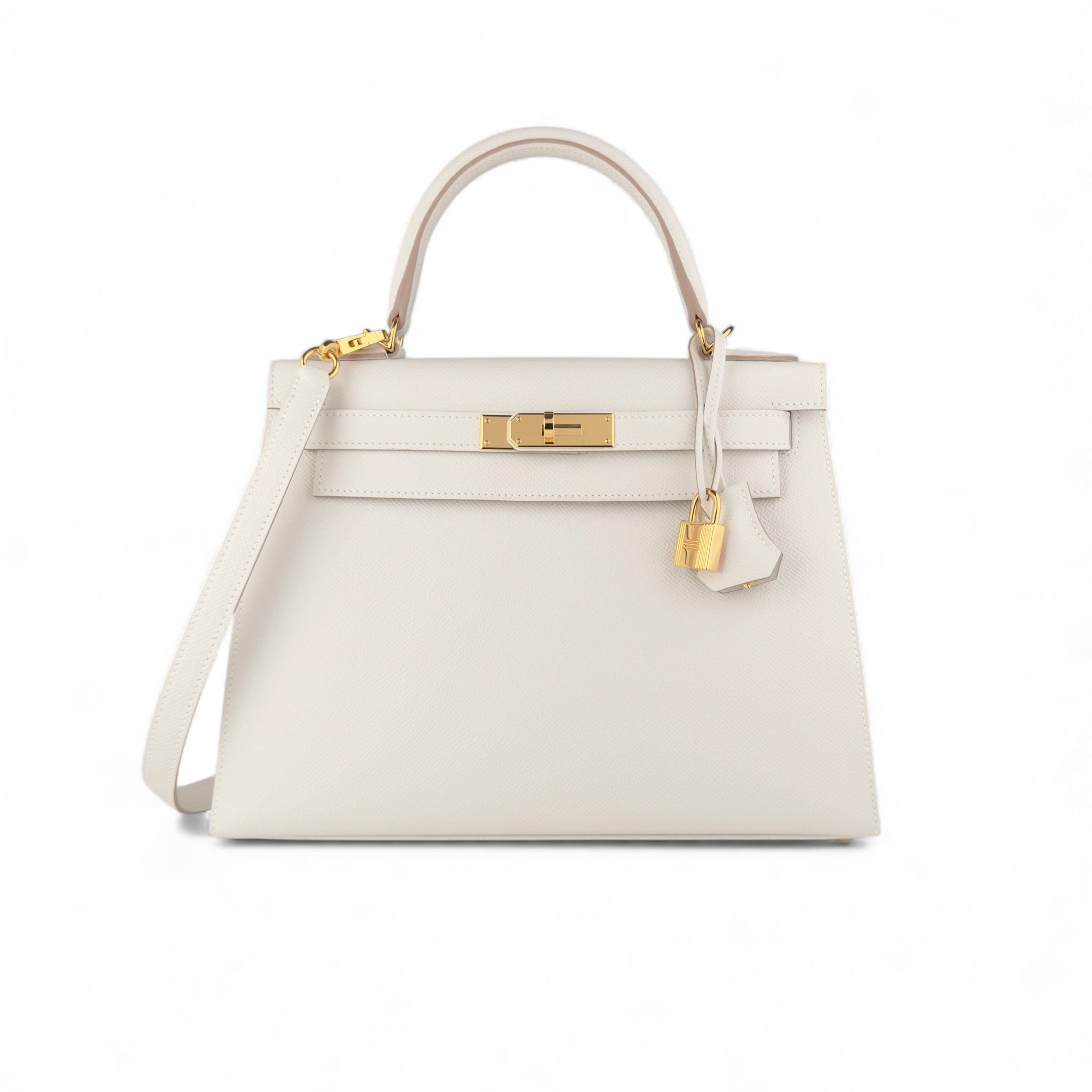 Highly coveted and always in unwavering demand, the Hermes Kelly Sellier 28 is the height of sophistication. Crafted in Gris Pale Epsom leather with gold plated hardware. This leather has a beautiful embossed grain that is incredibly durable. Many favour this leather type for its lightweight feel that holds a nice shape with structure. A wise investment you will enjoy for years to come.